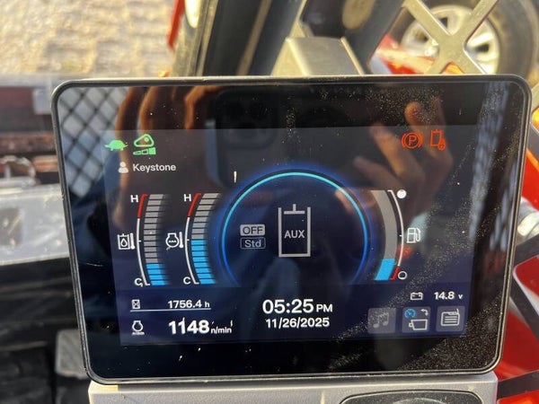 - Engine: Kubota V3307-CR-TE4 diesel, 74.3 HP, Tier 4 Final.