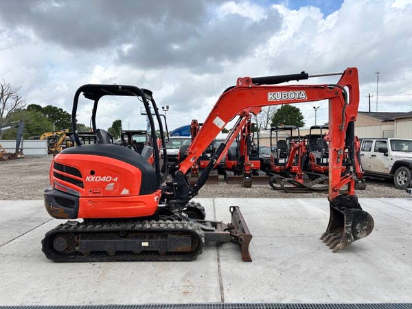 The 2015 Kubota KX040-4 is a 4-ton class compact excavator, generally equipped with a 40.4 gross horsepower diesel engine, a maximum digging depth of 11' 3", and an operating weight of approximately 9,195 to 10,360 lbs.